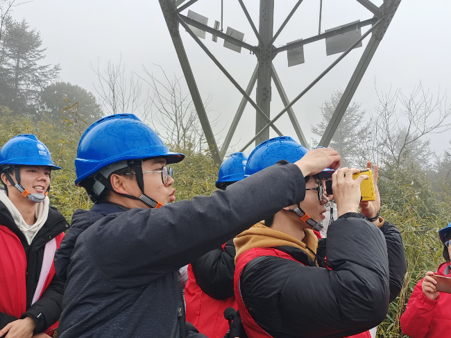 1月16日下午,卓工班师生乘车翻越泥巴山垭口,穿过竹林,体验500kV石雅一二三四线路的运维工作。雅安分部输电运检员工对现场师生进行安全教育,强调了安全帽规范正确的佩戴方法。抵达线路巡检点后,工作人员针对在不同的气候条件和输电负荷下线路运检工作的主要内容进行了详细介绍,并结合当前环境,现场解说冬季除冰的工作内容。工作人员介绍了最新的融冰方案,指导同学现场操作仪器,对同学们提出的问题进行耐心解答。同学们对输电运维工作在保障电力系统安全稳定运行中的重要作用有了更深刻的感受,同时,也更加体会到电网前辈的无私奉献和艰苦奋斗精神,纷纷向现场工作人员表示感谢。