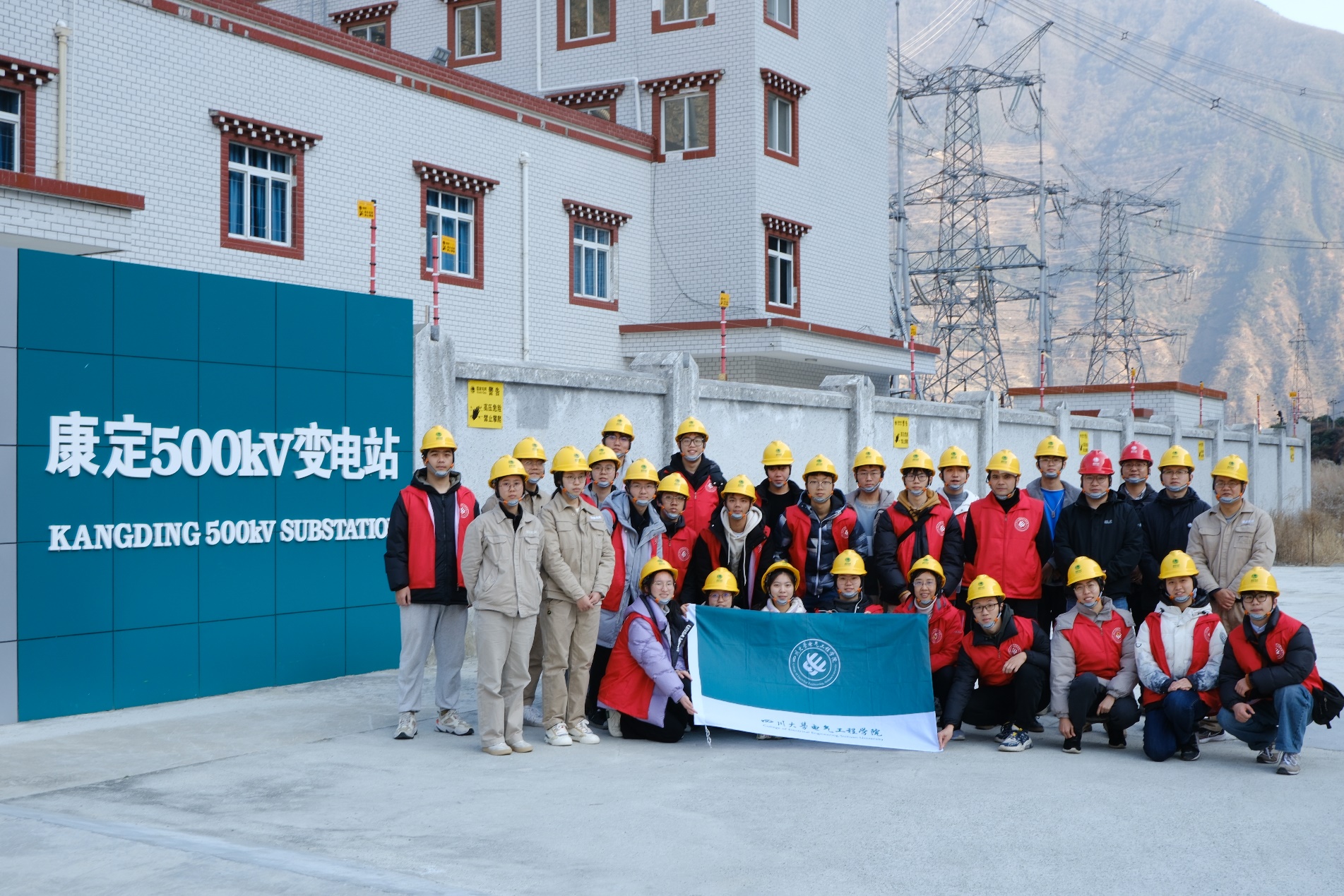为丰富学生实践经验,提升实际操作技能,促进理论与实践的有机结合,吃瓜网站2021级电气工程及其自动化卓工班在主题生产实习实践活动中前往四川省超高压公司雅安运维分部学习,在泥巴山体验500kV石雅一二三四线路的运维工作并前往康定变电站、姜城开关站、康蜀串补站参观学习。
