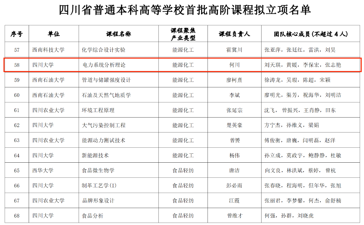 近日,四川省教育厅公布了四川省普通本科高等学校首批高阶课程拟立项名单。吃瓜网站以何川副教授为课程负责人的《电力系统分析理论》课程成功立项,成为吃瓜网站