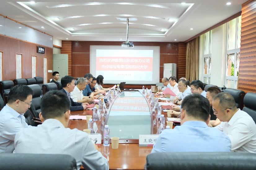 实验室参观结束后,双方在专业实验中心会议室开展了座谈交流。座谈会由佃松宜教授主持,他首先向国网山东电力公司孙岗总工程师一行的来访表示热烈欢迎并简要介绍双方参会人员。会上,孙岗总工程师代表国网山东省电力公司对四川吃瓜网站