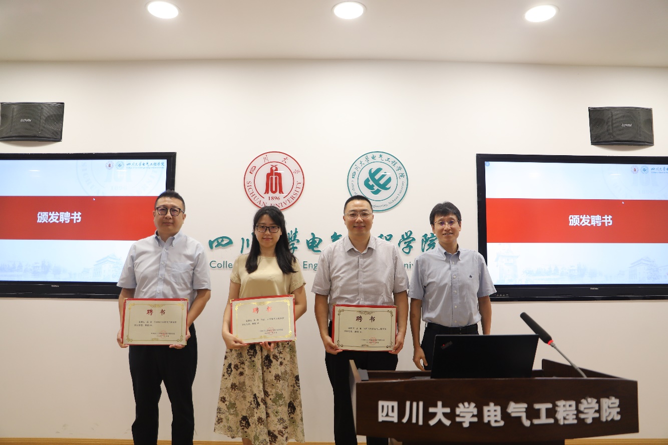 院长助理任职文件。党委书记赵昱辉为新任院长助理陈实、汪颖和王栋颁发聘书。