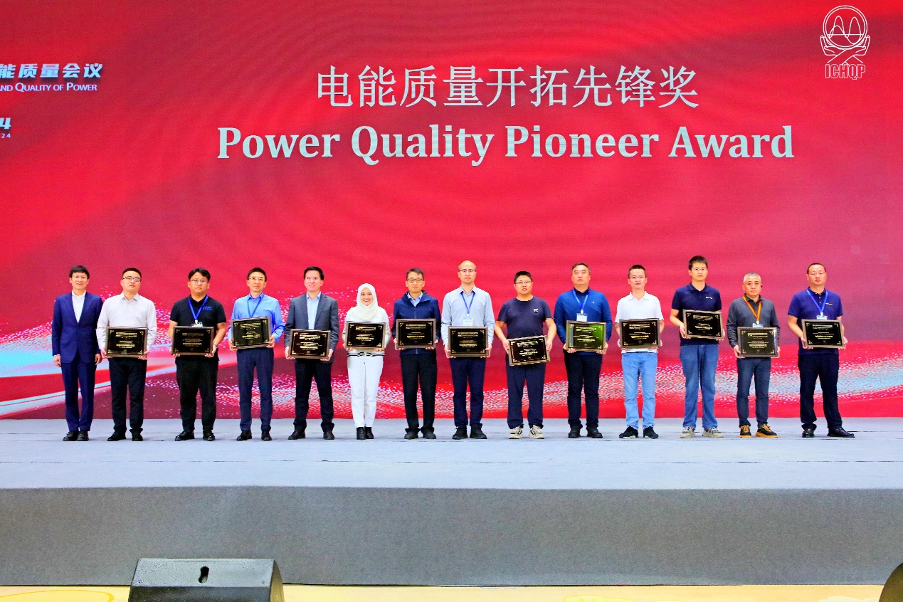 党委书记赵昱辉还向电能质量领域的代表企业颁发了电能质量开拓先锋奖。
