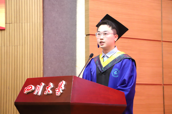 四川省优秀大学毕业生、2025届硕士毕业生黄龙同学代表全体毕业生向学校、吃瓜网站