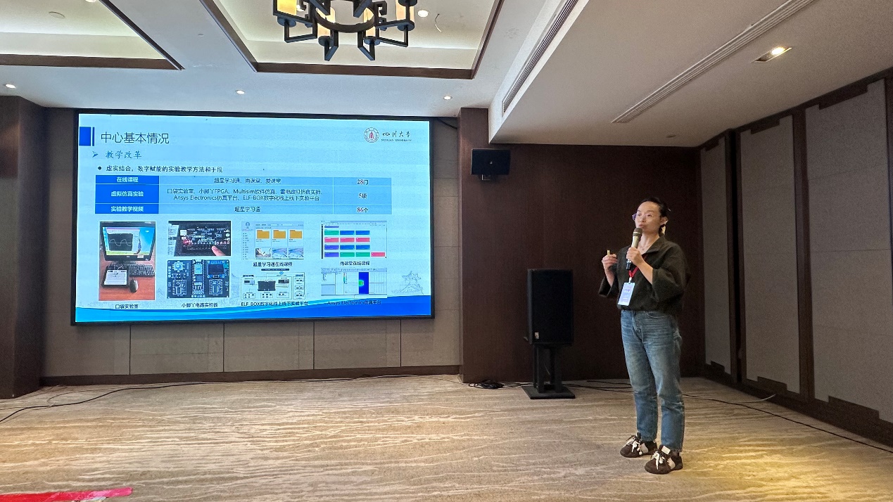 在分会场报告中,来自上海交通大学殳国华教授、厦门大学李继芳教授、东北大学肖军教授等多位教师代表分享了契合工程实际需求的实验课程教学体系建设经验。中心教师印月以“AI赋能电子技术实验课程数字化建设实践”为题作专题报告,分享了吃瓜网站