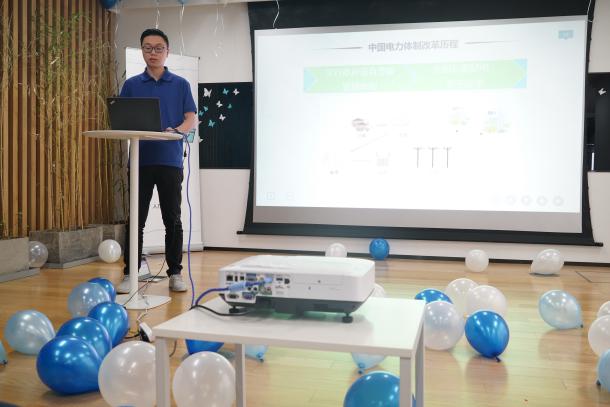 随后进入“星空座谈会”环节,主办方邀请到公司内部几位资深专家和大家进行交流。万益科技杨总为大家讲解了华宇电力和万益科技两家公司的发展历程,重点讲解了传统电力和新兴电力的关系、区别以及发展方向。万益科技公司政策研究中心工作人员和产品中心负责人分别从政策和产品两个方面对公司进行了介绍,前者着重介绍了我国电力体制改革的历程、电力市场的现状及发展趋势,强调了万益科技等新型电力公司诞生的必要性,后者从售电产品、用电产品和平台管理三个维度展示了万益科技公司的产品定位、产品目标、产品功能和产品构架。讲解结束后,同学们与工作人员积极互动,针对“政策对市场的作用”、“政策对增值服务的影响”、“服务型公司较之传统售电公司的优势”、“公司的用户群是面向售电侧还是用电侧”等问题进行了深入交流。
