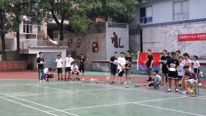 讲话结束便进入到了正式的素质拓展环节,这个环节分为课程成果评比、专项比赛竞速、趣味知识竞答三个部分。课程成果评比是对课堂上学习焊接的音乐彩灯、心形灯、电子时钟、循迹车进行焊接水平、外观、运作能力等方面的考核。专项比赛竞速包含无人机打靶、循迹车、水火箭三个项目,主要目的是考察学生们的实际操作能力与故障应变能力。最后的趣味知识竞答环节则汇聚了各个红旅队员在夏令营期间的授课内容,从而综合检验各班的学习状况。