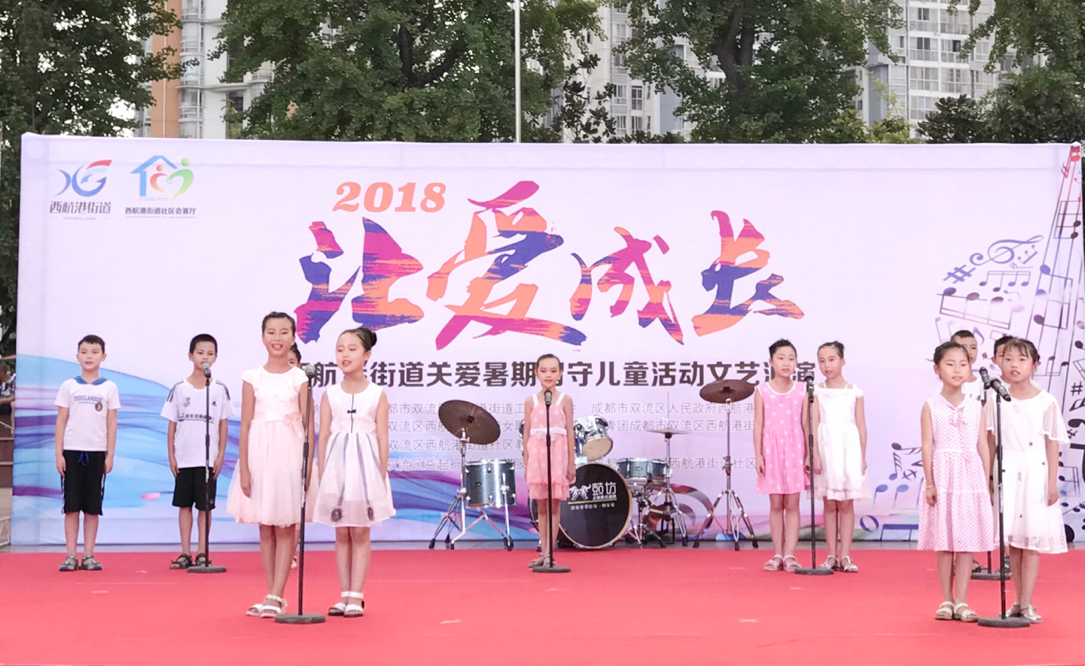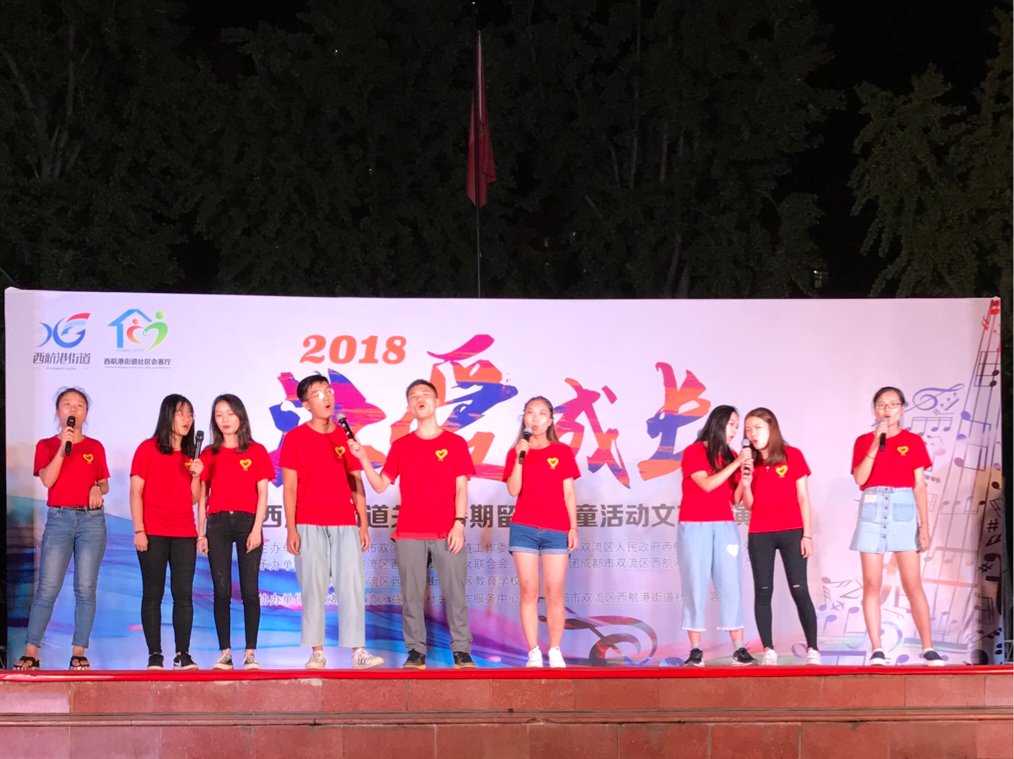 2018年8月10日晚,“西航港街道关爱暑期留守儿童”结业成果展示暨暑期社会实践文艺汇演在西航港街道综合文化活动中心隆重举行。本次晚会由中共成都市双流区西航港街道工作委员会和成都市双流区人民政府西航港街道办事处联合主办。西航港街道领导、电气信息吃瓜网站 “川爱”支教队青年志愿者、留守儿童及其家长一同观看了本次汇演。