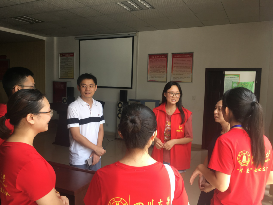 老师对“川爱”支教队的工作做出了充分肯定,表扬了支教队员在有限条件下的所取得的工作成果,鼓励支教队成员再接再厉,努力让自己和留守儿童的暑期生活更加精彩。下午,老师一行来到了机场路社区与九龙湖社区,询问了支教点位的物质供应与教学设备情况,叮嘱支教队成员要把“川爱”精神延续下去,要把“川爱”活动扩展开来。