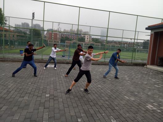 饭后,组员们来到西区运动场开始活动,交流生们十分认真地跟随学习,度过了一段愉快的时光。随后他们提到太极是一项神奇的运动,简单学习后便有放松的感觉,同时表示会深入学习并且将其推荐给自己的朋友。