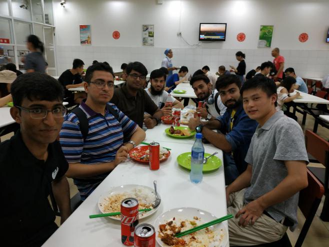 国际交流营第三组中国组员与组内巴基斯坦交流生Murad以及他的朋友相约在清真食堂共进午餐。席间相处愉快,相互介绍了许多本地景点和文化,谈及中国功夫时,交流生们表示出了极大的兴趣。由于学校开设了丰富多元的体育课程,邓鹏同学表示可以简单教授一些太极拳动作。