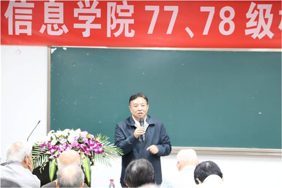 各系、中心领导,偕同77、78级校友和曾参与77、78级教学和管理工作的离退休教师代表,参加了校友返校座谈会。