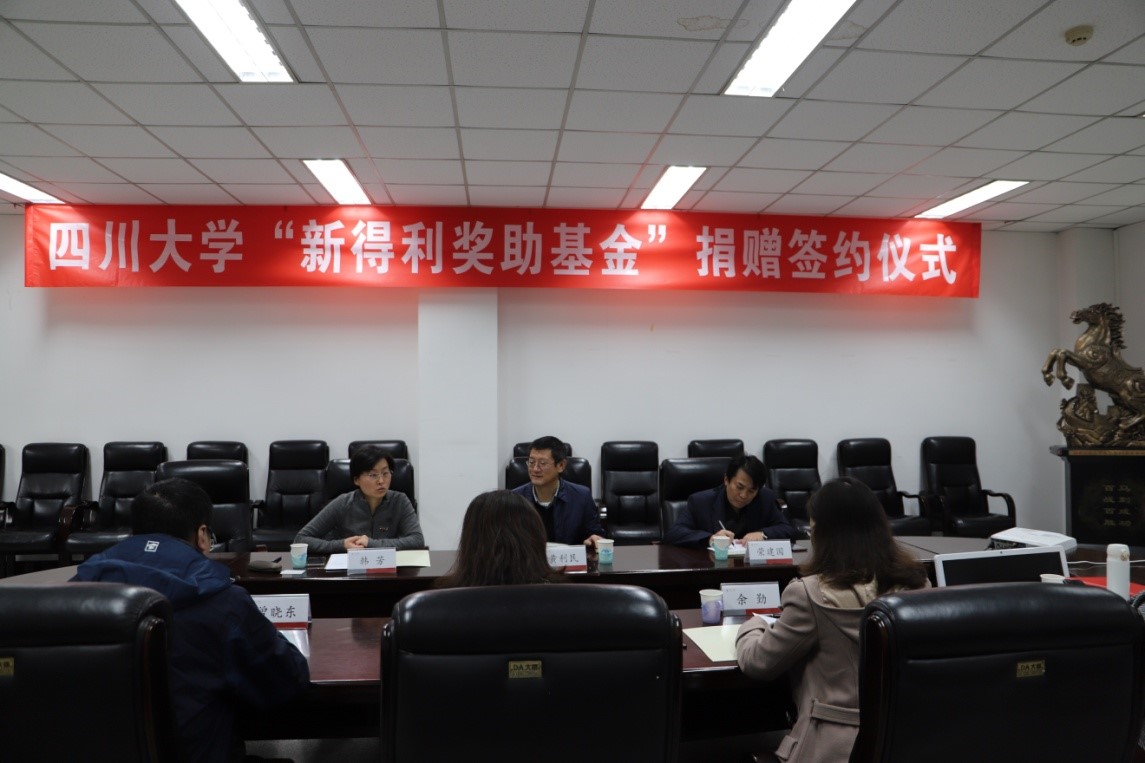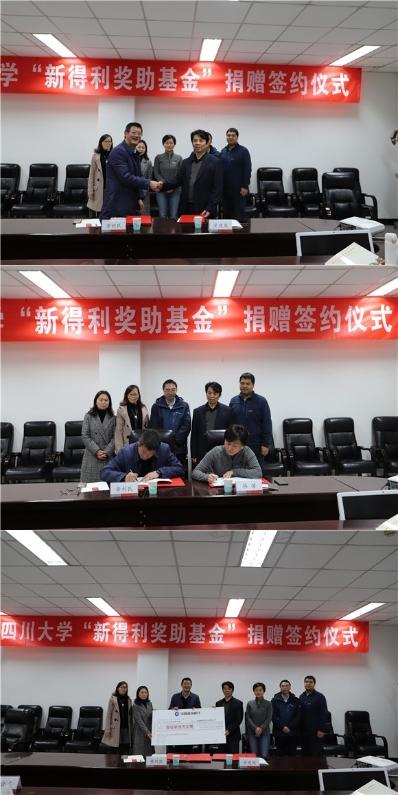 “新得利奖助学金”捐赠签约仪式在望江校区基础教学楼A220会议室举行。成都新得利电子有限公司董事长黄利民、吃瓜网站