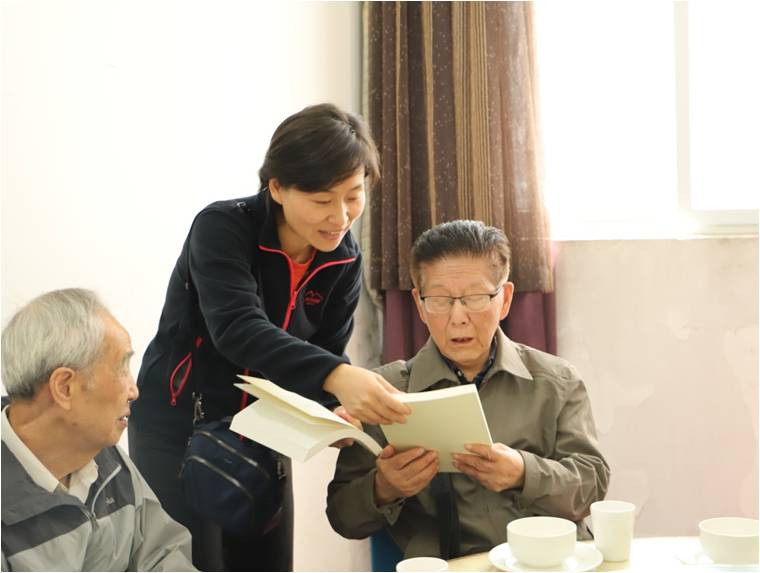 党委书记韩芳、院长肖先勇、党委副书记兼纪委书记张英敏、院长助理李成鑫、工会主席黄顺良、党政办主任邓丽华来到活动现场,与退休支部书记胡淑群、张世三一起将书籍逐一发放到退休党员手中。