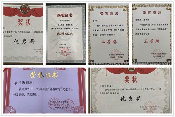 2019年“读懂中国”活动中荣获征文三等奖,邓丽华老师、黄施瑞同学的文章荣获《心系下一代》杂志社第三届“心中的感动——记教育系统关心下一代优秀人物”征文活动优秀奖。