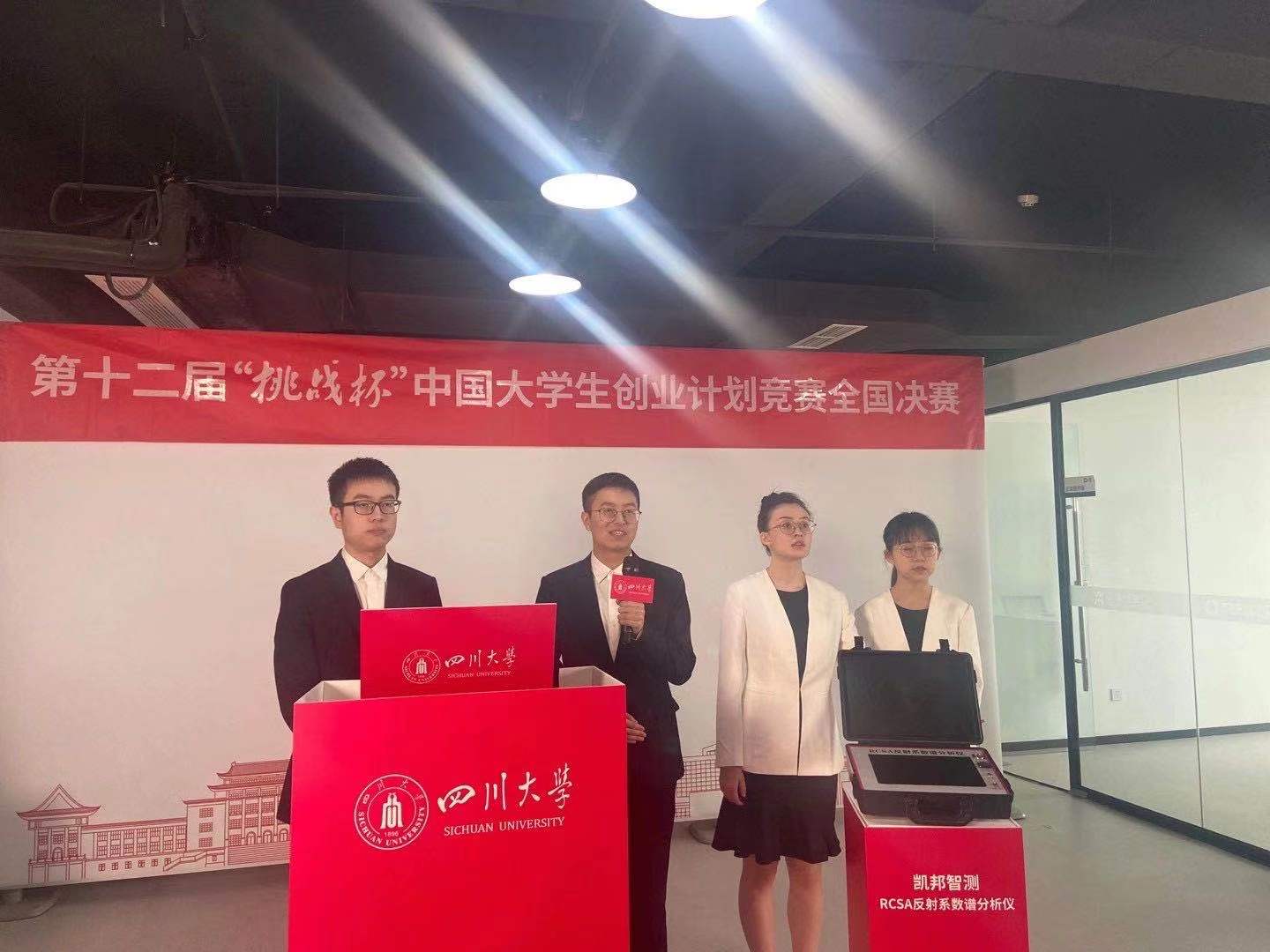 “凯邦智测”团队的主要研发产品,是由学生担任主研人员、师生协同历经4年研发出的国内首创的便携电缆缺陷诊断定位仪器——RCSA反射系数谱分析仪。其对于全面掌握电缆情况,预警电缆故障,消除“马路拉链”,守护城市地下电网运行安全有巨大帮助。该分析仪相较于国内现有产品,以全新的理论实现了电缆检测技术的更新换代;对标国外产品,以丰富的测试数据为支撑得到更好的效果,打破了国外的技术封锁。该产品可以帮助电力部门及时排查电缆隐患,避免故障发生,减少城市中非计划性停电事故的发生概率,助力智慧化城市建设。目前该产品已成功销售4台,在成都、北京、广州等城市开展20余次试点运用,保障了约100公里电缆的安全运行总时长超过2万小时。