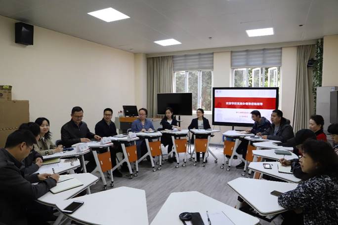 学院党委书记韩芳首先代表学院向吴主任一行的到来表示欢迎和感谢,她指出,学史是为了达到明理、增信、崇德、力行的效果,最终落脚到力行上。此次培训交流活动的目的是为了践履知行合一,提升老师们实际工作的能力水平,希望大家认真学习交流,不断增强为师生服务的意识,提升干事创业精气神,助力校院“双一流”建设再上新台阶。
