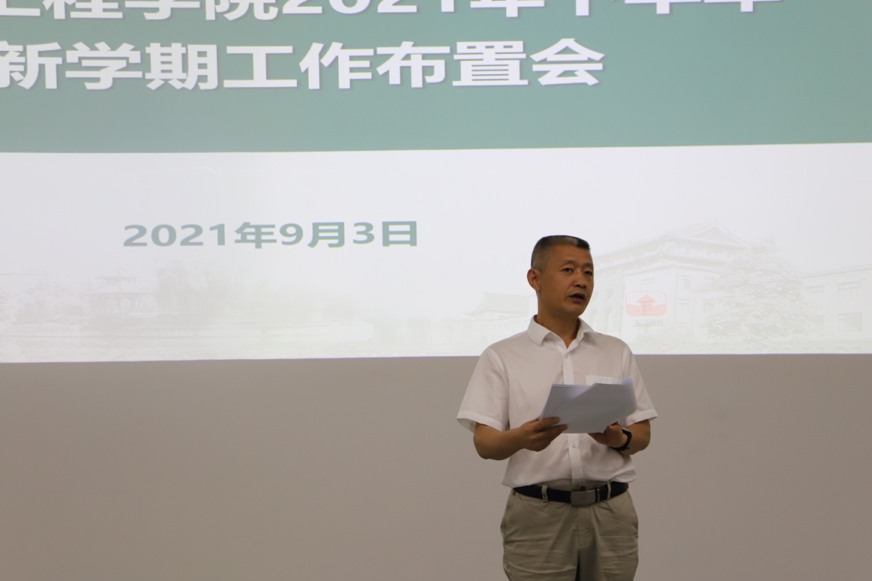 在基础教学楼C204召开2021年下半年新学期工作布置会,传达学校会议精神并部署2021年下半年新学期工作。学院全体领导班子、全体教职工参加会议,会议由学院党委书记韩芳主持。