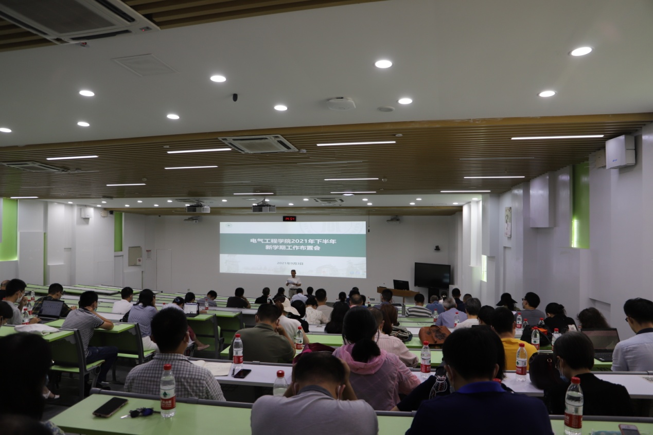 副院长周步祥作《找差距,卧薪尝胆,建立科学基础机制;抓落实,脚踏实地,推动学科整体发展》工作报告。周院长总结了今年以来学院科研工作的开展情况,分析了电气工程、控制科学与工程两个学科在科研发展方面存在的差距,并指出下半年需要完成的科研工作任务。在研究生工作方面,周院长结合当前研究生教育工作形势,分析了学院的发展现状,并就培养方案修订、培养质量把关、导师管理等重点工作进行了说明。