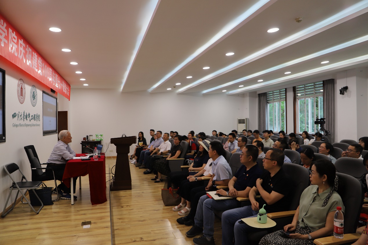 和电气工程学科的发展历程及取得的成就,他将自己的亲身经历和感悟放在百年党史发展的背景下,分享自己的入党初心,他殷切希望党员师生都能成为“有理想信念、有道德情操、有扎实学识、有仁爱之心”的对社会有用之人;老师们要坚守立德树人初心,为社会主义建设事业培养更多具有家国情怀、社会创造力和创新思维能力的可靠建设者和接班人。