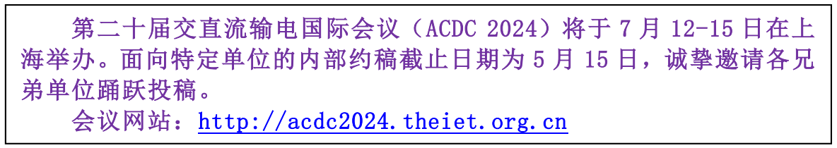 IET交直流输电国际会议是电力系统领域久负盛名的国际性输电会议,ACDC2024由IET、清华大学主办,怀柔实验室、中国电气装备集团联合主办。围绕构建新型电力系统的基础元器件、关键装备、重大交直流输电工程、交直流融合多场景应用等议题,以大会主旨报告、分会场专题报告、论文口头交流、论文张贴交流、技术参观等形式,对交直流输电领域的前沿课题、产业动态和技术发展趋势展开讨论。