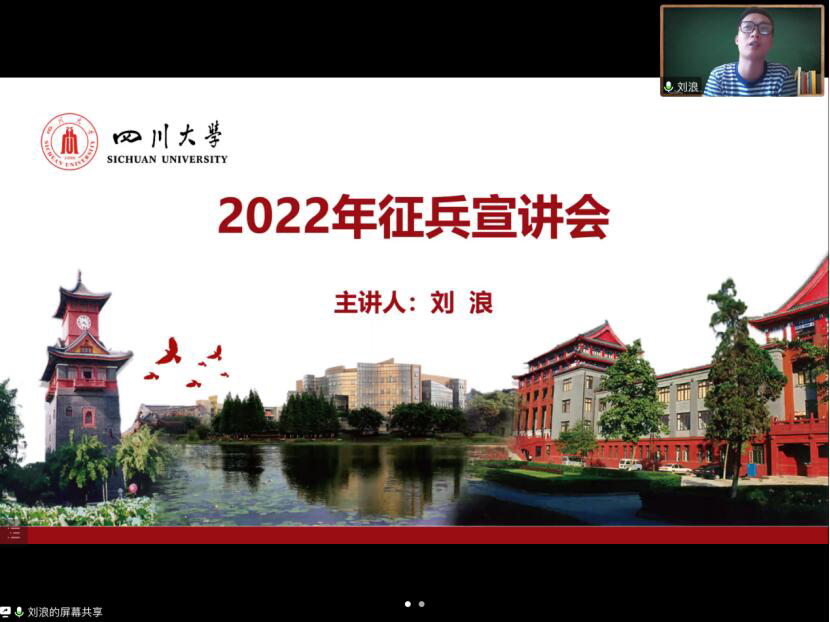 会议伊始,刘浪同学带领同学们观看征兵宣讲视频,响亮的口号和爱国誓言激荡着与会同学们携笔从戎的赤子心。随后,他结合自身的入伍经历,分享了其入伍体会,并就大学生征兵入伍的国家政策、成都市政策、吃瓜网站