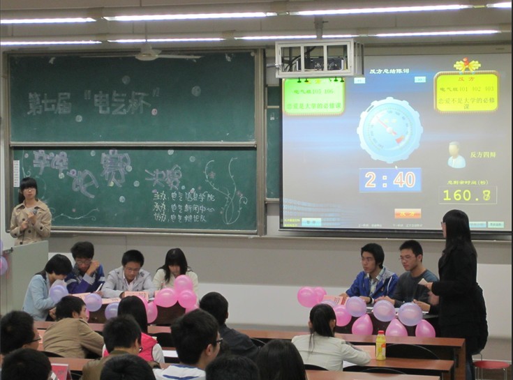 第七届“电气杯”辩论赛的决赛在一教B座301教室展开。