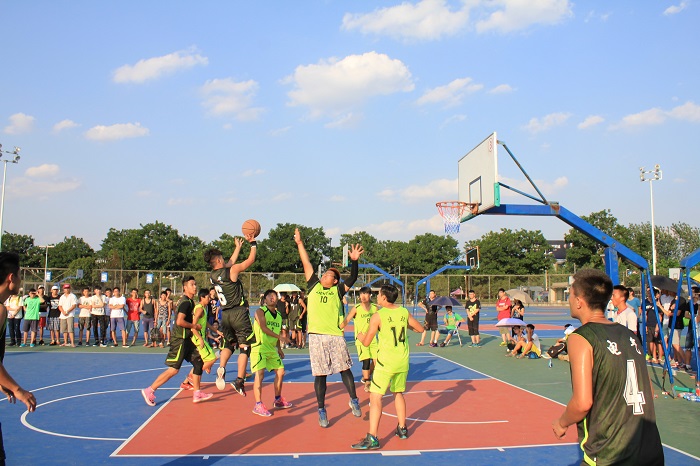 篮球队和建筑与环境学院篮球队在决赛中再度相遇,为了最后的胜利放手一搏。强强相遇,酝酿着一场力量与智慧的精彩较量。晴空万里,烈日炎炎,当天下午5时整,这场巅峰对决正式拉开了帷幕。