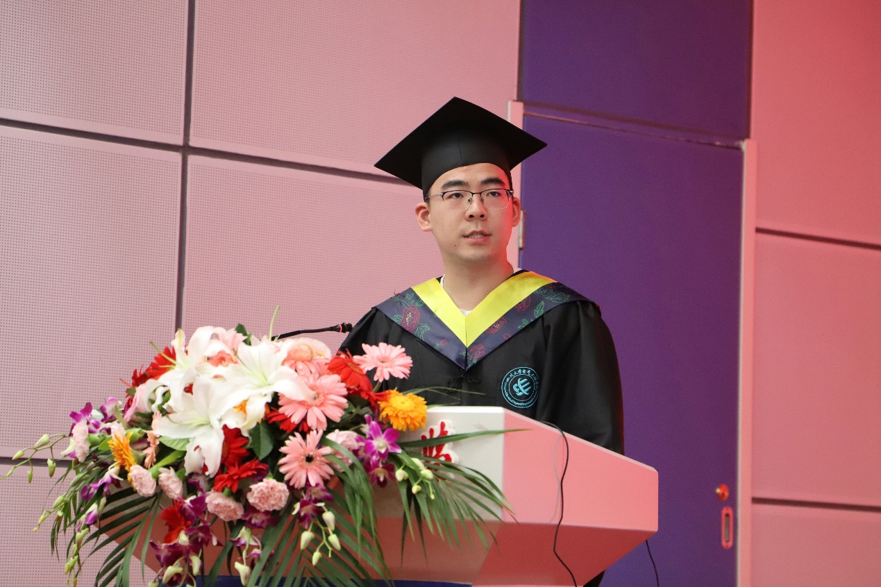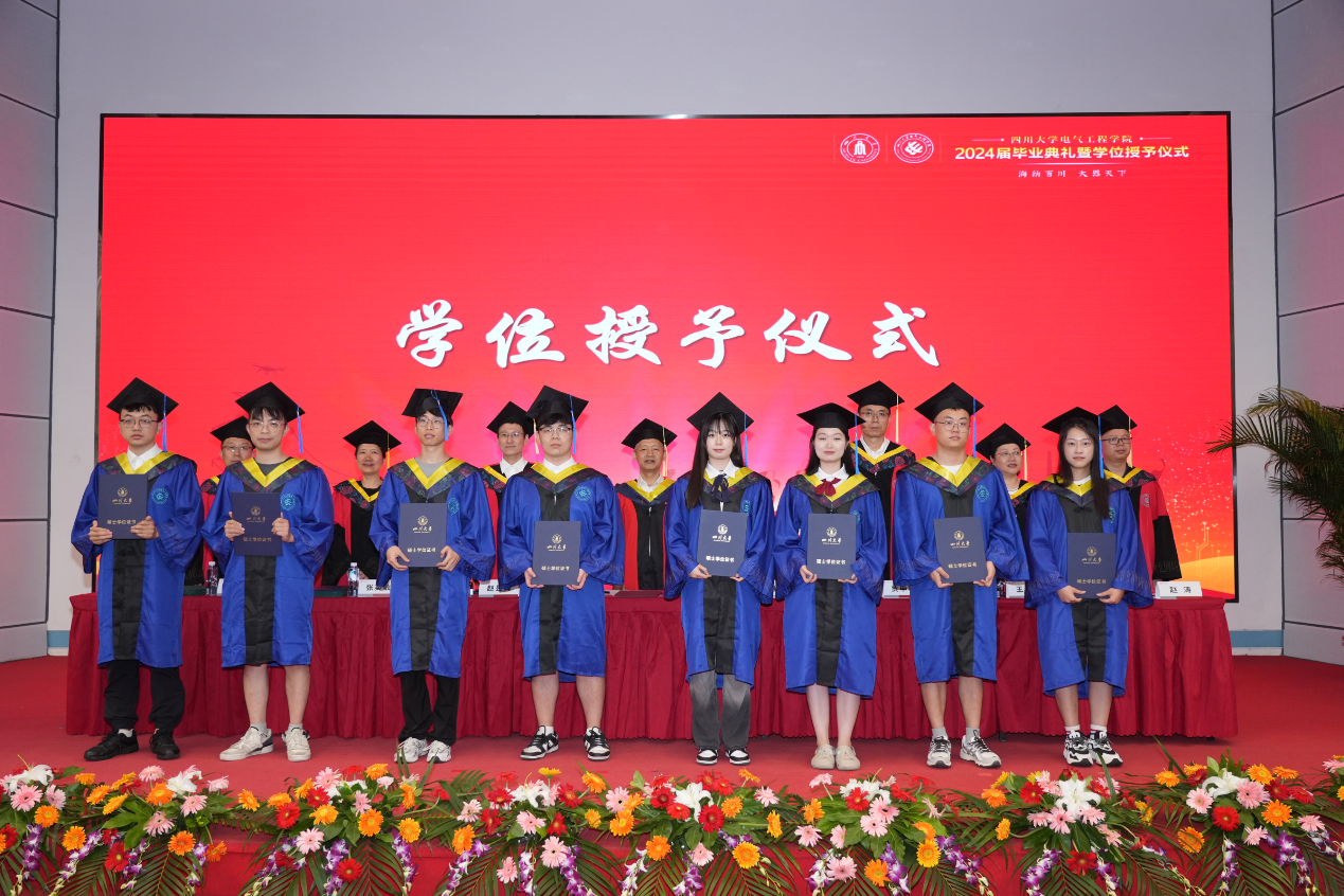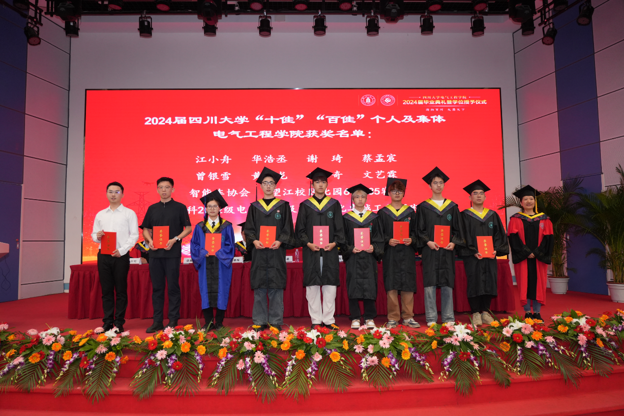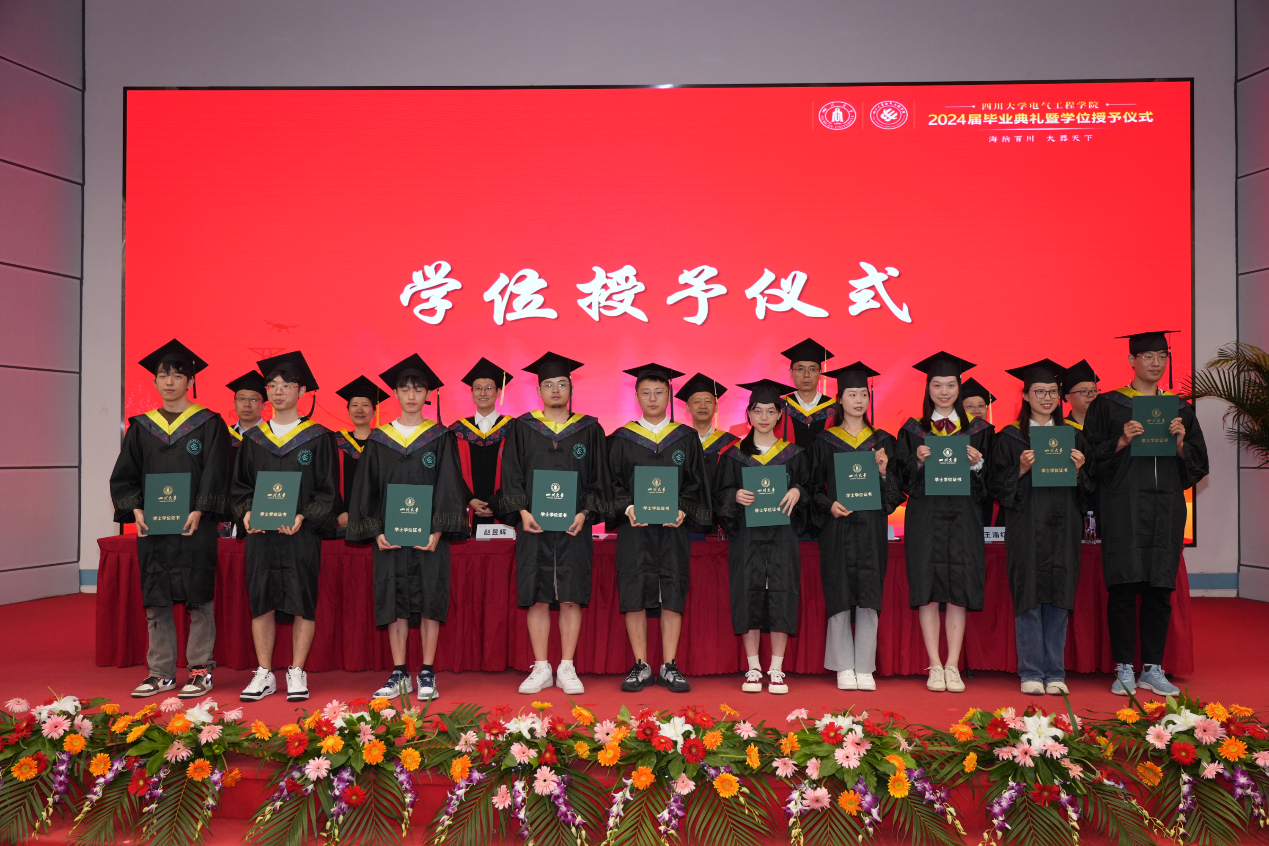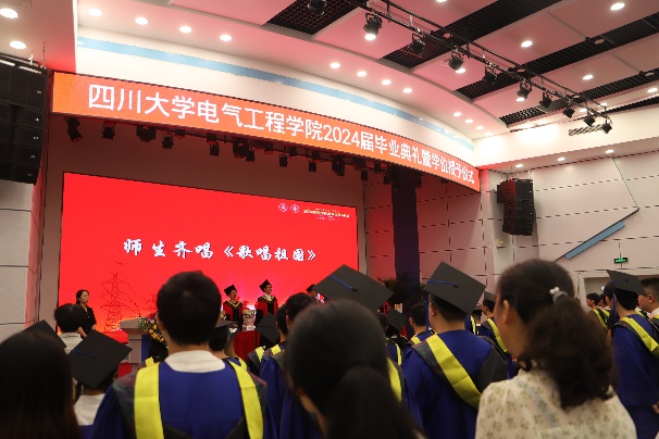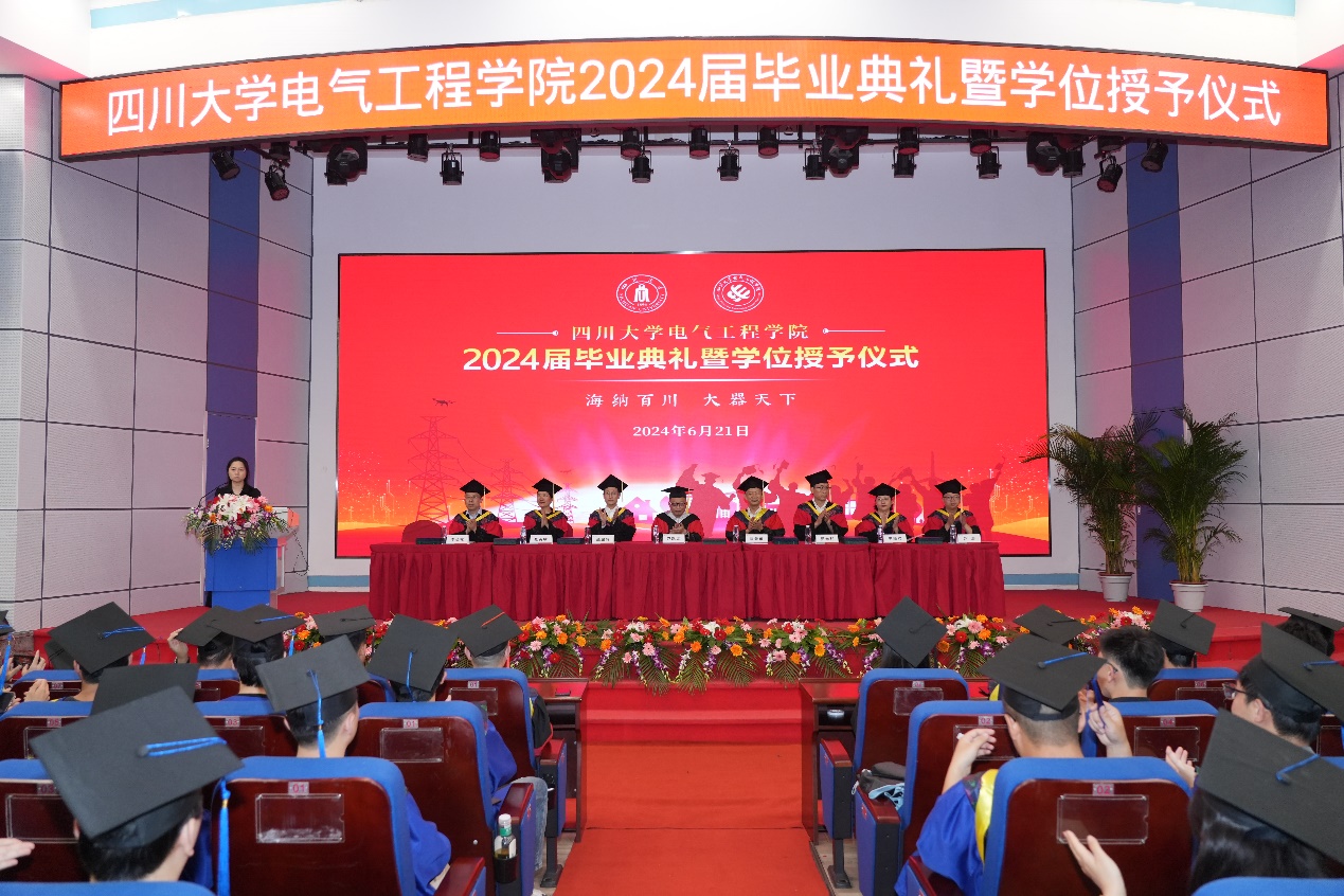 和老师们表达感谢和敬意。回顾大学四年时光,江小舟感慨道:正是坚持与毅力,使同学们在求知的道路上始终脚踏实地,即便面临困境与挑战,也心怀希望,毫不退缩地向前迈进。大家怀着对专业的深厚热爱,携手并进,在风雨中相互鼓励,也收获了真挚的友谊。他号召同学们,共同铭记作为川大电气人的家国情怀,不忘初心,始终坚守自己的理想与信念,在未来的人生赛道上披荆斩棘,奋力奔跑,不负时代,不负韶华,再相见时能以优异的成绩骄傲地向母校报告!