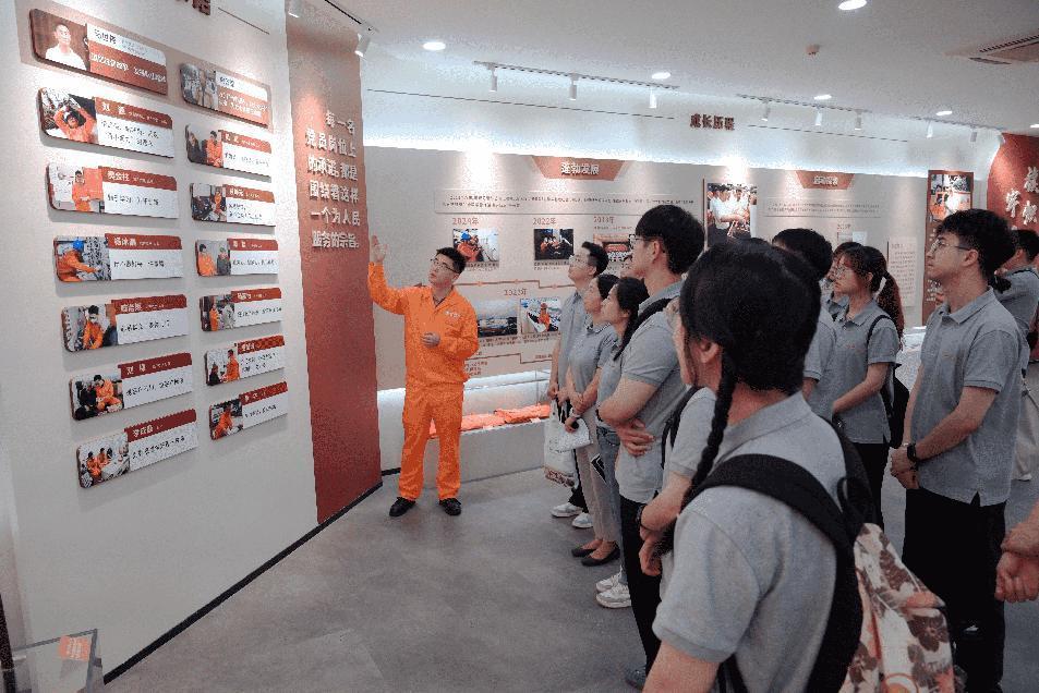 活动开始,国网四川电科院党委组织部(人力资源部)副主任林瑞星热情地接待了到访老师和同学们,并带领大家参观了“以奋斗者为本”文化墙。林瑞星讲述了电科院的发展沿革,并重温习总书记2023年7月在考察南瑞集团的谆谆嘱托——“要立志高远、脚踏实地,一步一步往前走,以十年磨一剑的韧劲,以‘一辈子办成一件事’的执着,攻关高精尖技术,成就有价值的人生”。