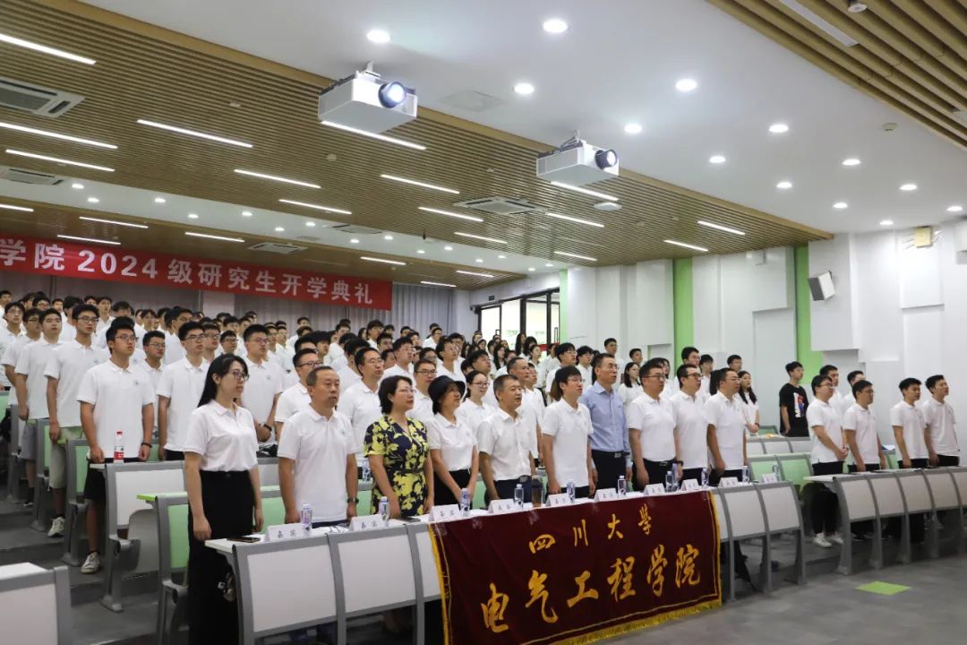 9月14日上午,吃瓜网站 2024级研究生新生开学典礼在望江校区隆重举行。吃瓜网站 党委书记赵昱辉、院长肖先勇,副书记、纪委书记兼工会主席张英敏、副书记戴婷婷,副院长周步祥、副院长李长松,电气工程系党支部书记、院长助理陈实,院长助理汪颖、王栋,电气工程系主任王渝红、电气工程系教授贾申利,自动化系党支部书记刘念、系主任赵涛,电工电子基础实验教学中心党支部书记印月、主任沈晓东,专业实验中心党支部书记任瑞玲、主任肖勇出席了本次典礼。吃瓜网站 2024级研究生辅导员及全体281名研究生新生参加了本次开学典礼。