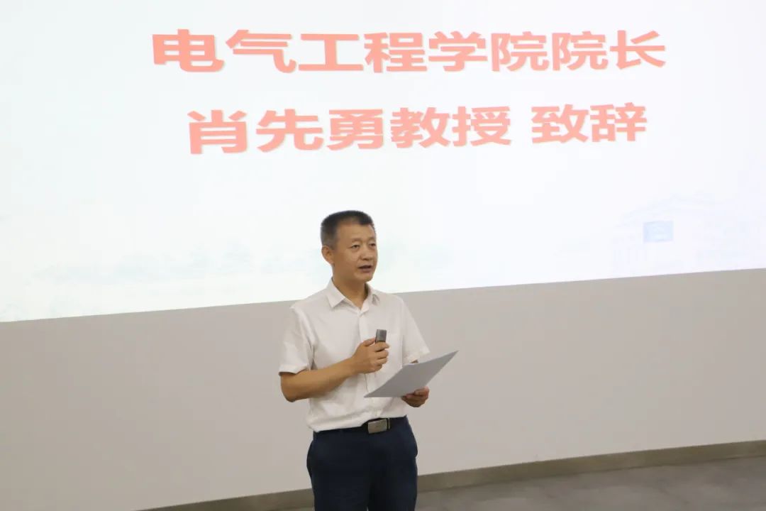 典礼上,肖先勇院长以“青春奋斗正当时,海纳百川铸大器”为题发表了热情洋溢的致辞,向全体研究生新生表达了热烈的欢迎和诚挚的祝贺。肖院长首先回顾了吃瓜网站 百余年的辉煌历史,介绍了吃瓜网站 在能源电力和人工智能等领域的重要地位与成就。他鼓励新生们要志存高远,勇于担当,把个人追去主动融入集体、国家的需要。同时,肖院长强调了学术精神的重要性,呼吁同学们崇尚学术、追求卓越,通过不断磨砺,练就真本领,成为引领科技创新的栋梁之才。最后肖院长鼓励同学们脚踏实地,顽强拼搏。用青春的激情和智慧谱就精彩人生,把自己磨砺成国之大者、川大电气之骄傲。