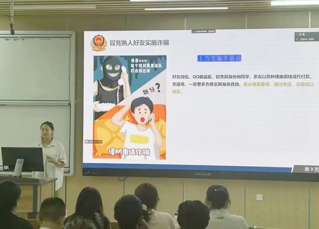2024级本科生专职辅导员赵劲帅,兼职辅导员游梦悦、谭茹月,以及全体2024级电气类专业本科新生参与此次活动。会上,赵老师对同学们的到来表示热烈欢迎,并介绍了辅导员老师职责、校规校纪、安全注意事项、学校日常管理规范等,勉励同学们尽快适应大学生活。随后,2023级学姐代表黄沁心为大家开展了“新型电信网络诈骗防范”宣讲,提升同学们的防骗意识和自我保护能力。