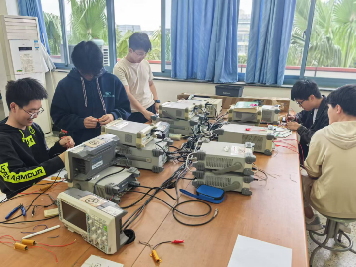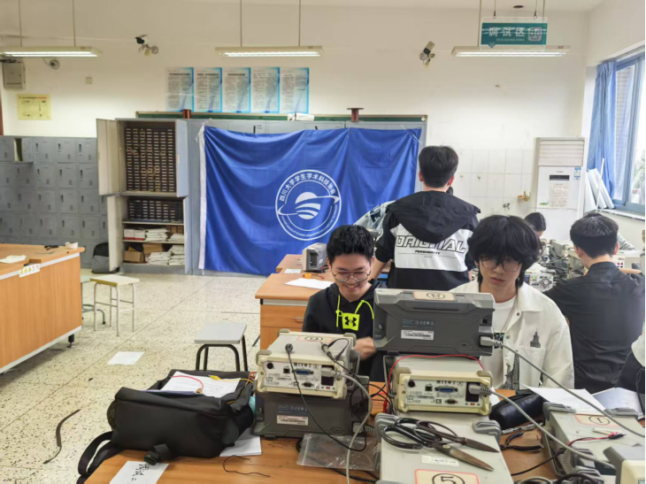 成功进入复赛的选手领取比赛套件后需完成双电源DC-DC变换器焊接及调试工作。同学们利用课余时间进行焊接与调试。这并非一项简单的任务,是一场耐心与技艺的考验。在实验室里,他们利用电烙铁一丝不苟地将电子元器件精准地焊接到电路板上;在调试的过程中,面对着电路中的各种问题和挑战,他们利用万用表测量各个元器件电压以及通路电流发现问题、解决问题,步步完善。