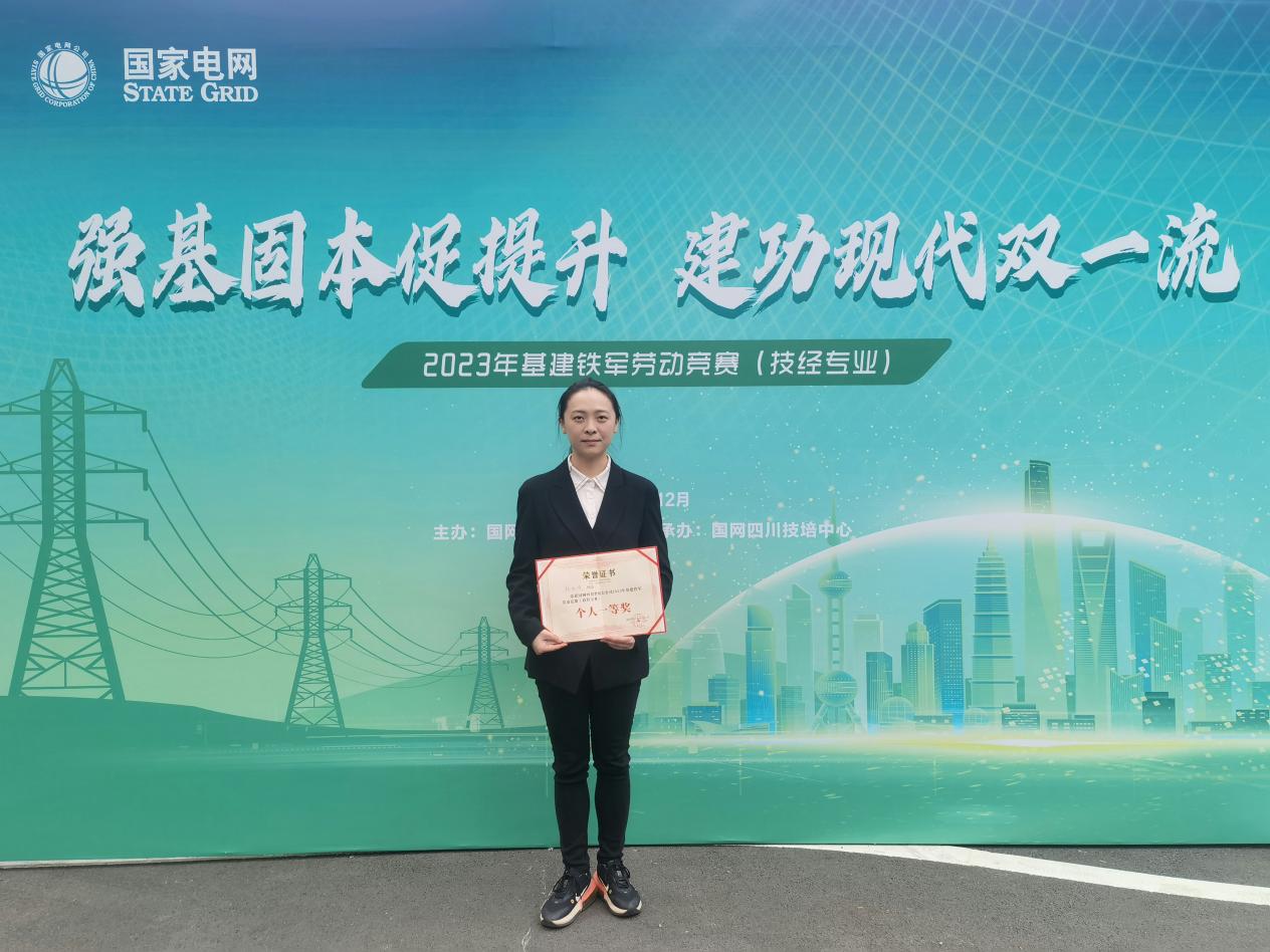 此后,针对自己的专业知识和技能的薄弱部分,段雨婷着力攻坚,不仅继续钻研已熟悉的制度规范,更深入学习造价管理、识图算量等知识,在2023年12月省公司举办的基建铁军技经专业劳动竞赛中捧回了一等奖的奖杯。