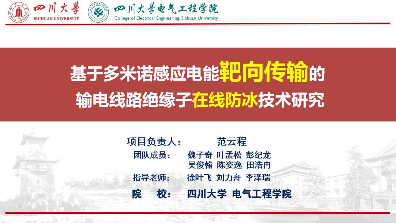 绝缘子是高压输电线路重要组成部分。我国输电线路常穿越高寒地区,绝缘子易覆冰,造成绝缘子机械性能下降,绝缘电压降低,危及电网运行安全。然而,传统融冰除冰方法存在能耗大、效率低、成本高、推广难等弊端。因此,项目团队提出一种基于多米诺感应电能靶向传输的输电线路绝缘子在线防冰技术,旨在实现输电线路绝缘子在线高效融冰,保障电力系统稳定运行。相较于常规的非靶向能量传输方法,同等功率下,靶向方法传输能量更集中,绝缘子温升更高更快,融冰更彻底。下一步,项目团队将持续优化系统结构与功能,助力我国电力产业高质量发展。