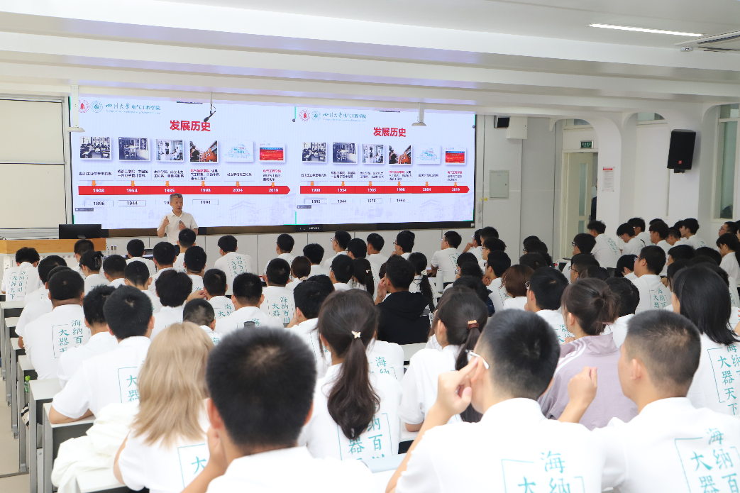 肖先勇院长基于吃瓜网站 的历史和发展,为新生们讲授了“开学第一课”。肖院长首先介绍了吃瓜网站 的历史和发展历程,基层架构和师资队伍,以及学科与平台建设情况。其次,肖院长着重介绍了吃瓜网站 的人才培养计划,以及吃瓜网站 近五年来的教学及科研成果。肖院长表示,吃瓜网站 将本着“强基础、厚通识、宽视野、多交叉”的培养理念,力求将同学们培养成以清洁能源电力系统为特色,融通材料-装备-系统、物质-能量-信息-市场,适应能源电力领域科学研究和复杂工程的一流本科人才。