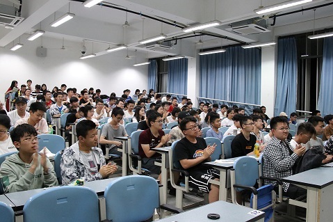 学科发展及科学研究方向,并对学生的学业发展和职业规划进行引导。肖院长分别从“时代呼唤”、“人生平台”、“选择道路”、“当下未来”、“志存高远”五个方面对大学生提出殷切期望,希望同学们认真学习,严于律己,努力成长为杰出人才。同学们认真聆听,受益良多,现场掌声不断。
