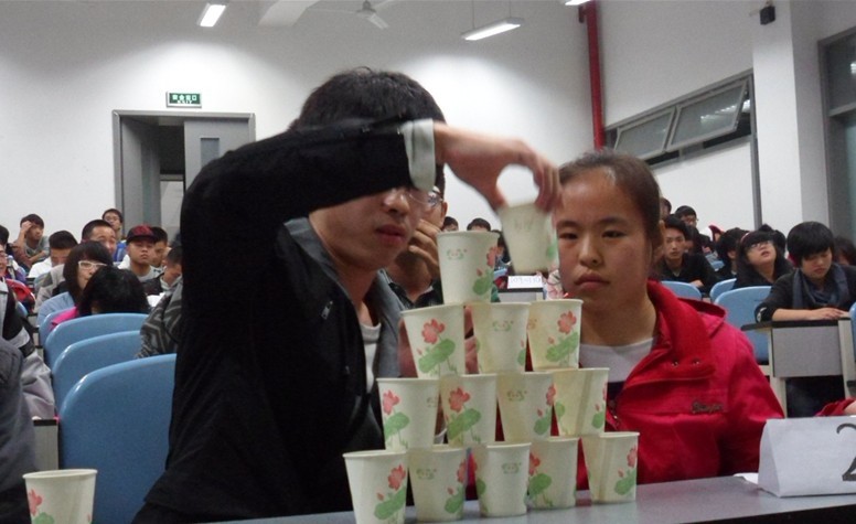 决赛共分为“团队展示”“唾手可得”“观众互动”“丰富多彩”“扭转乾坤”五个环节。“团队展示”环节中参赛队员通过歌唱、ppt展示、吉他弹唱等形式充分展示了个队的风采。竞赛内容不仅涉及了生活常识、时事政治、自然科学、世界地理、军事、影视等方面的知识,充分考察了队员们的百科知识,还添加了吹气球、搭纸杯的实践项目,考察了队员的动手能力和团队协作的能力。赛程设计新颖别致、趣味性强,让同学们在快乐中学到新知。比赛过程充满着趣味和戏剧性,选手们相互协作,展现了良好的竞技状态和精神面貌,场下观众为本方队伍助威鼓劲。最终,历时两天,经过三轮激烈的角逐,304、305团支部代表队以丰厚的文化底蕴、敏捷的思维和矫捷的身手摘得桂冠。