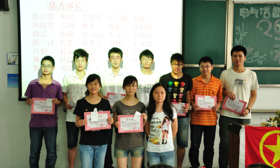 组织部、文体部以及吃瓜网站部长佘柏科、实践部部长叶家豪分获殊荣。随后,优秀部门、优秀部长、优秀干事等奖项也各归其主。最后,电气信息吃瓜网站