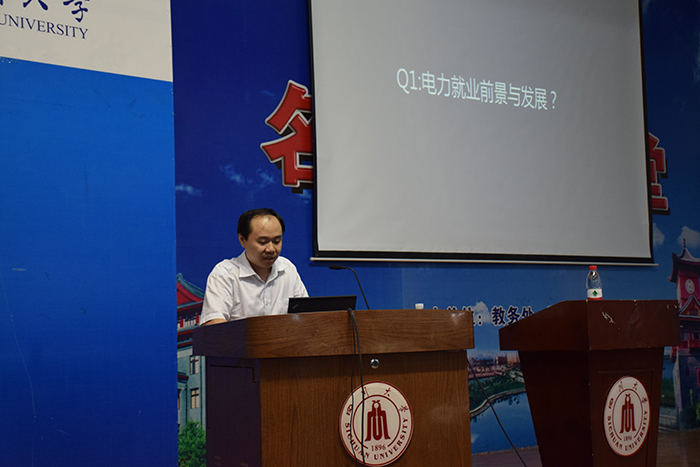 唐夲学长从小处着眼,通过自己大学时期室友的经历告诉我们作为大学生需要具备的一些基本素质:能跨界、有小追求、爱创造、会表达、会休闲。这是基础,同时也是能力。当今时代是一个互联网和全员创业的时代,唐夲学长向同学们介绍了他自身的履历,并以此为例让我们明确自己在这个能源互联网的时代应该如何规划自己的职业生涯。对此,他向同学们提出了四点建议。第一,培养成长的心智。面对努力、挫折、批评时,我们应该以一个成熟的心态积极面对困难。第二,尝试不同可能性。我们应该在大学时期多多尝试不同的领域,兴趣爱好、课外活动、专业学科等都是我们可以提升自己的平台。第三,做好时间管理。明确目标、要事优先、建立清单、坚持实践。第四,构建知识体系。他建议同学们不仅要注重自己的专业学科知识,同时也要加强自己各种基础知识的充实。除此以外,唐夲学长还针对电力就业前景、同学们的毕业选择、大学生需要具备的能力等大家关心的问题进行了深入的解答。
