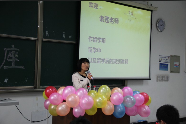的谢莲学姐为同学们讲解了出国留学方面的相关问题及注意事项。