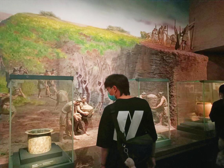 实践团队接着前往了成都博物馆和金沙遗址博物馆。团队先后参观了成都博物馆六个展览主题。展厅中多件精品文物集中表现了古蜀文明的瑰丽神奇,展现了成都作为蜀郡郡治,丝绸之路“河南道”的起点,西南地区政治、经济、文化中心,在亚欧经济与文化交流中居重要地位。部分展览还原了成都市民市井里巷、民生百业,美食香茗,体现了巴蜀地区人民的安居乐业,物质精神生活的富足。在金沙遗址博物馆,团队成员通过与讲解员交流并采访参观的群众,感受到了大家共同的文化认同感以及各大博物馆所肩负的传承历史的重任。