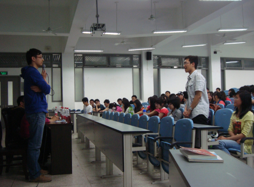 整场活动以主持人就同学们最关心的几个问题向嘉宾发问开始,一扫同学们以往对交流会刻板宣讲的印象,迅速调动了同学们的积极性,引导同学们迅速进入了主题。由蔡宇学姐开始,5位嘉宾分别讲述了自己在竞赛、保研、学生工作及就业等方面的经历和心得。现场气氛热烈,高潮迭起。