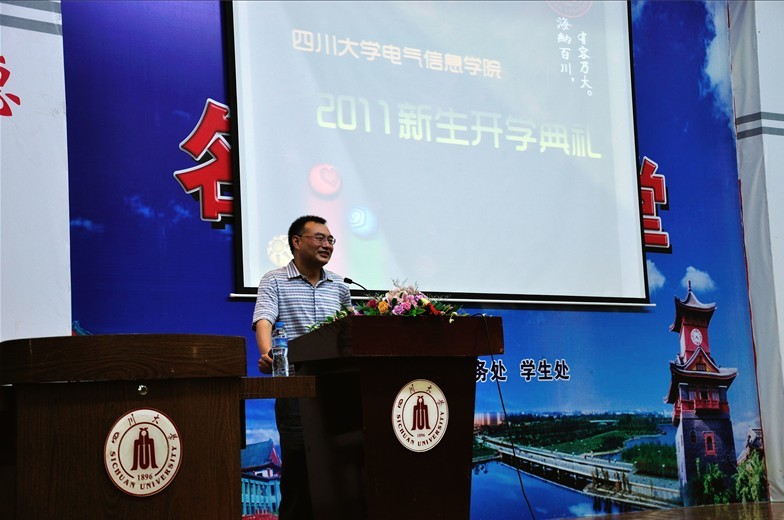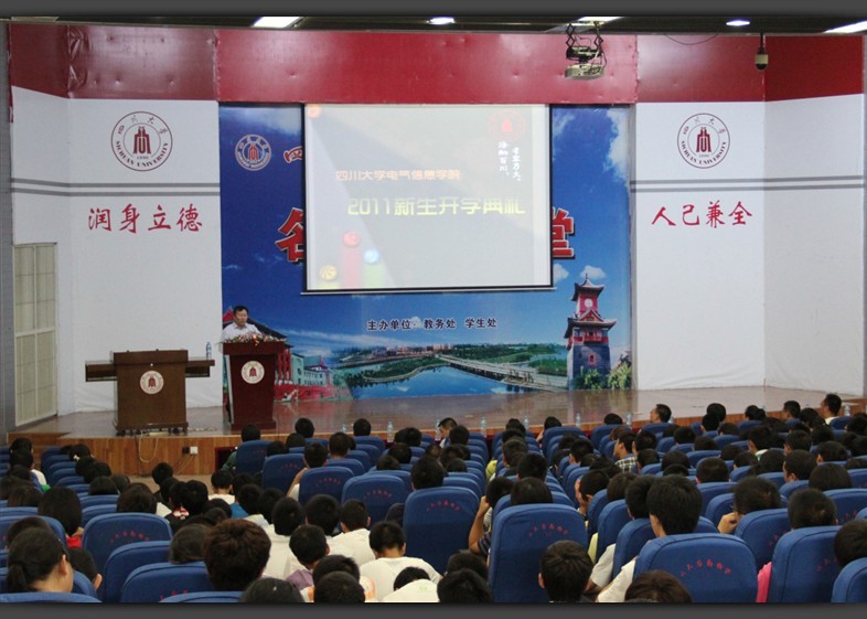 2011级本科生开学典礼。开学典礼于下午2时在江安校区一教水上报告厅准时举行。