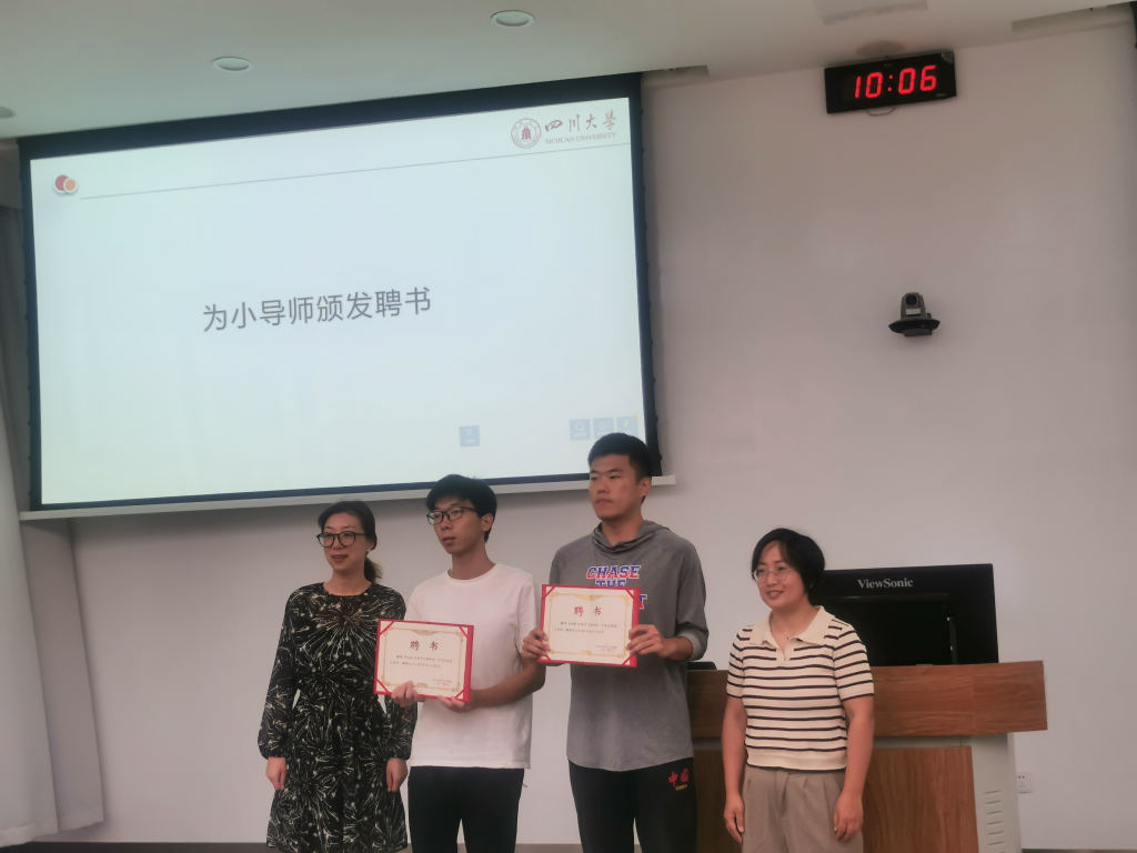 2022届本科生的深造情况。卢静老师和于孜清老师为小导师代表颁发了聘书,感谢他们过去一年的努力和对升学交流营同学的帮助;随后,卢静、李程老师为2022届优秀营员代表颁发了奖状及证书。