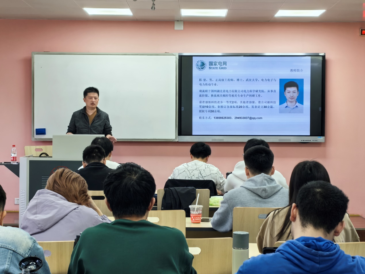 2021级电气工程及其自动化专业卓工班电气工程前沿探讨课企业技术专家进课堂——柔性直流输电技术及其工程应用,在基础教学楼顺利开展。本次讲座由来自国网湖北省电力有限公司电力科学研究院的相关专家陈堃老师主讲,吃瓜网站