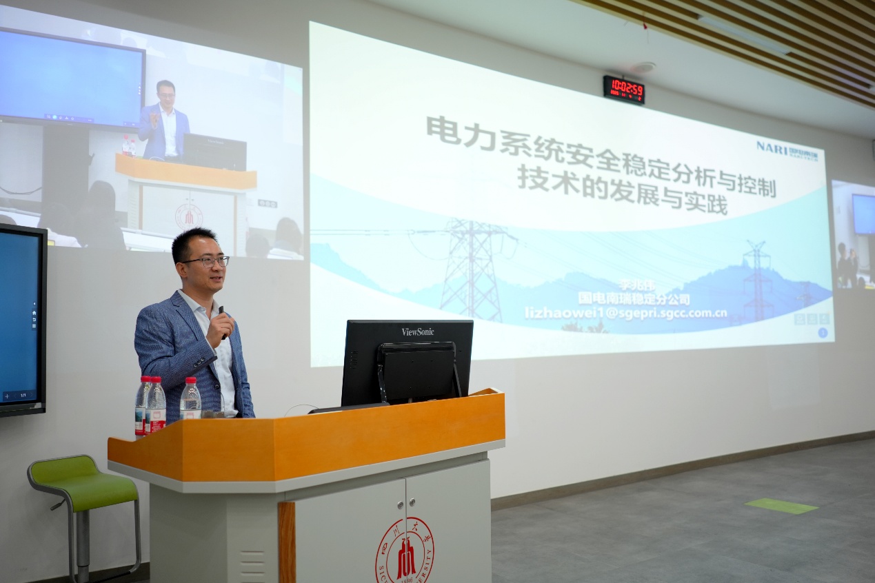 电气工程系邀请江苏省产业教授、国电南瑞稳定分公司电网分析咨询部经理李兆伟正高级工程师走进《电力系统安控与自动装置》课堂,在基础教学楼C座201教室为2022级电气工程及其自动化专业本科生带来主题为《电力系统安全稳定分析与控制的发展与实践》的专题讲座。