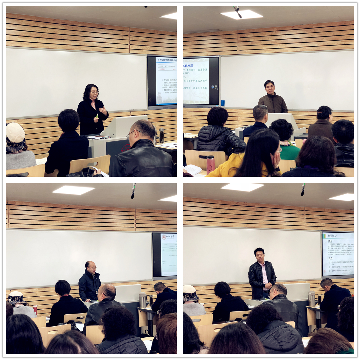 电气工程系王渝红主任、自动化系佃松宜主任、通信工程系钟俊主任、医学信息工程系张劲主任汇报