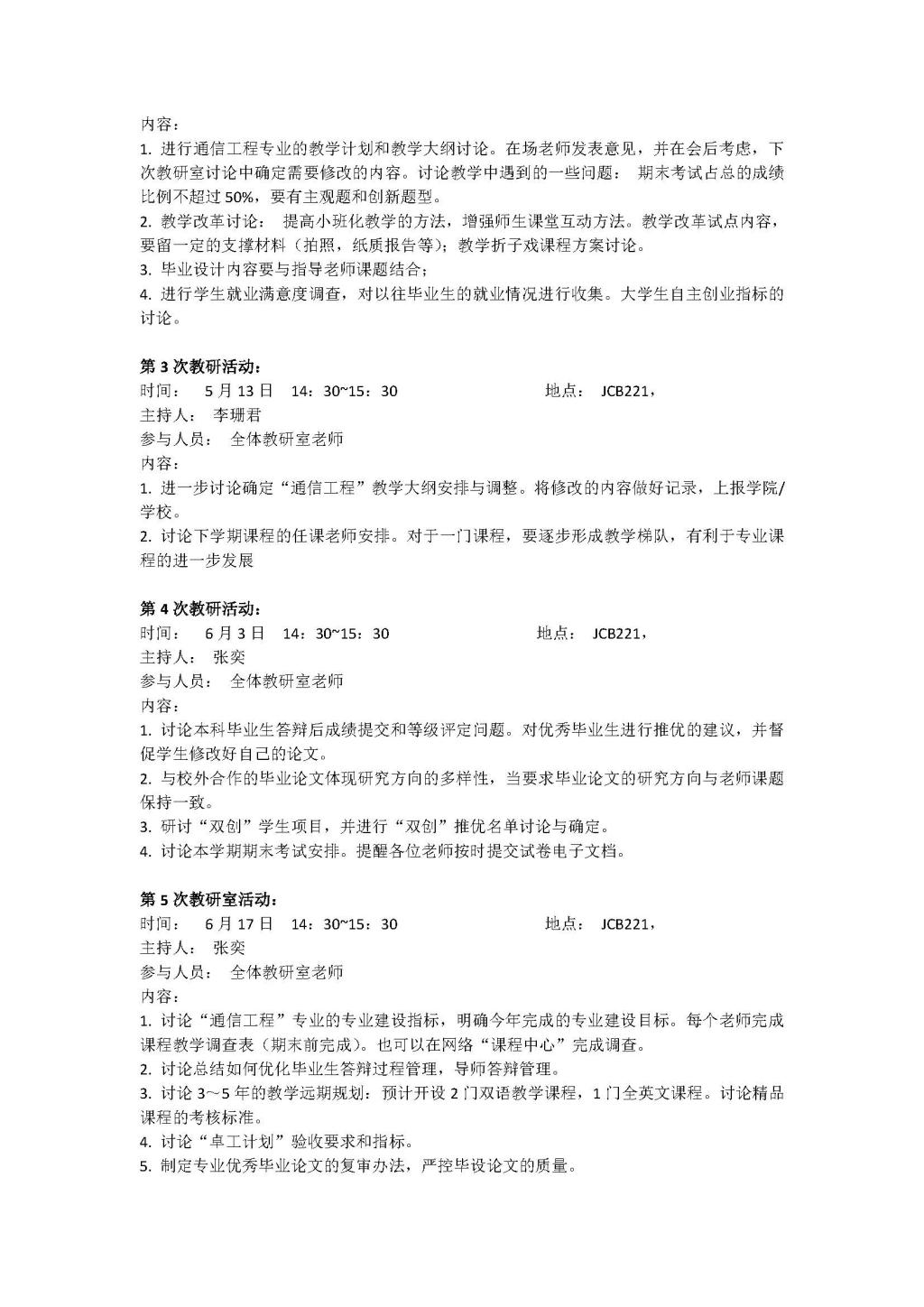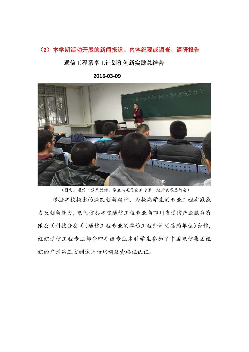 通信工程2016年(春季学期)教学活动简报