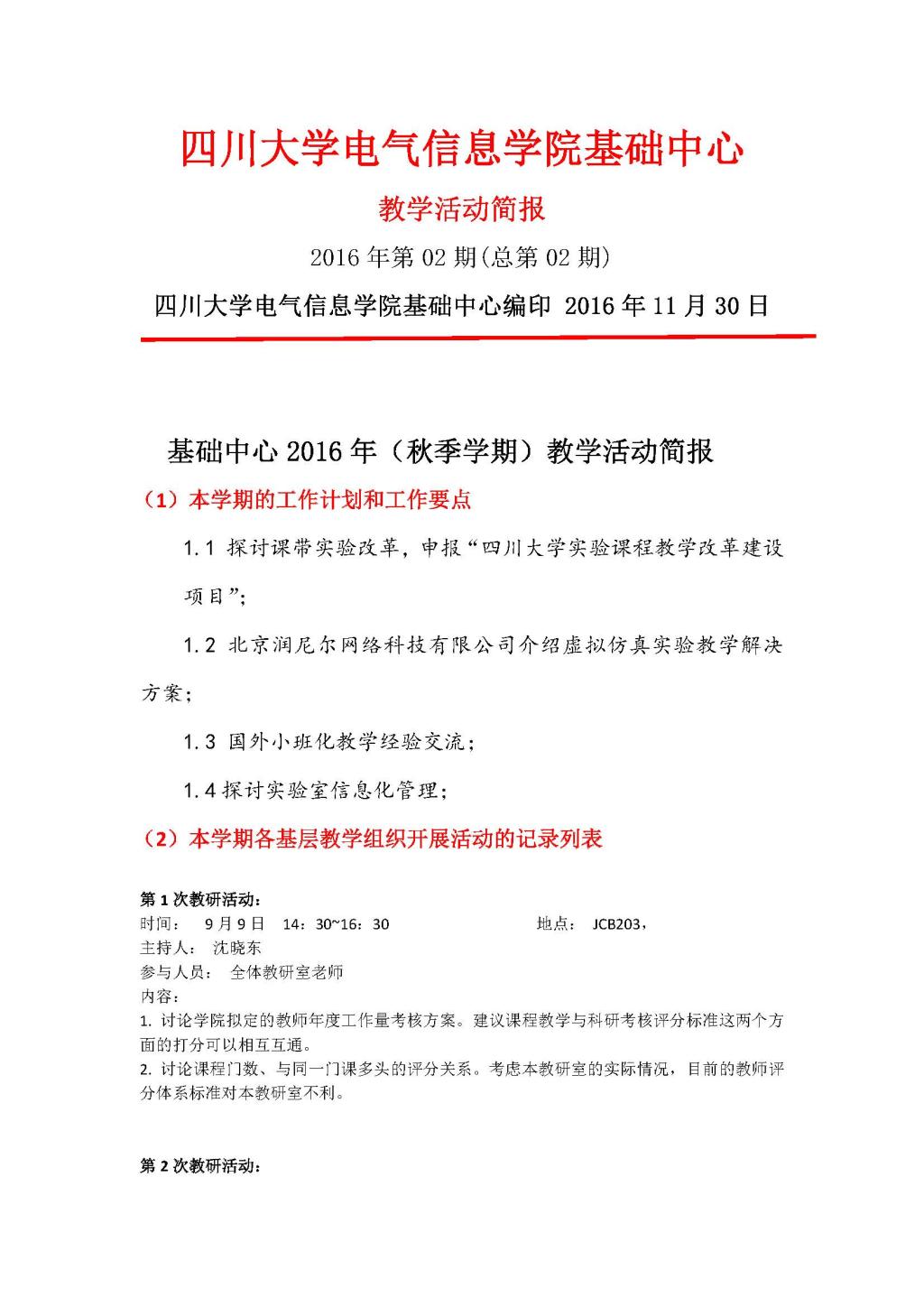 基础中心2016年(秋季学期)教学活动简报